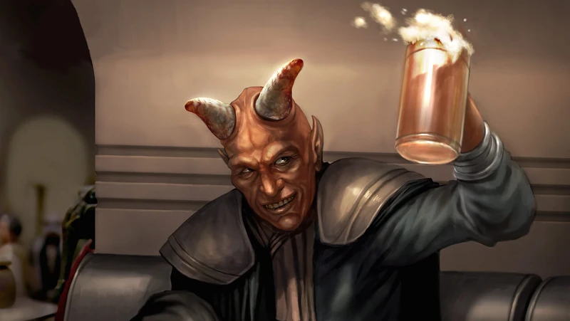 Twelve beverages are on tap with the standard serving size being sixteen ounces. Drinks include Blue Milk, Tatooine Sunset, Jawa Juice, Yatooni Boska, Tatooni Junko, and Hutt’s Delight. Live music in the form of the Bith band Figrin D’an and the Modal Nodes is a regular occurrence, who enjoyed entertaining the crowds with their (seemingly) one song, “Mad About Me.” Located in a settlement that is best described as a “hive of scum and villainy,” it should be no surprise that the Cantina is often the site of trouble included literal disarmaments and dead Rodian bounty hunters.