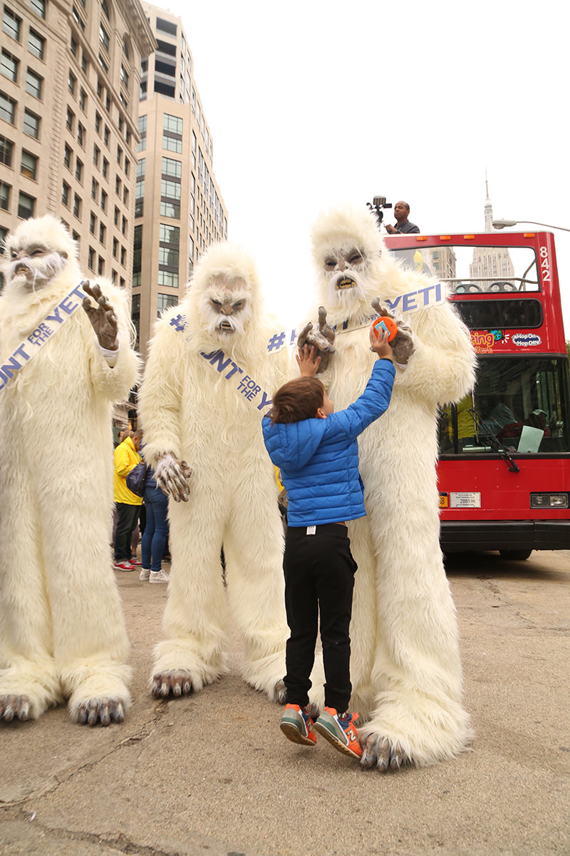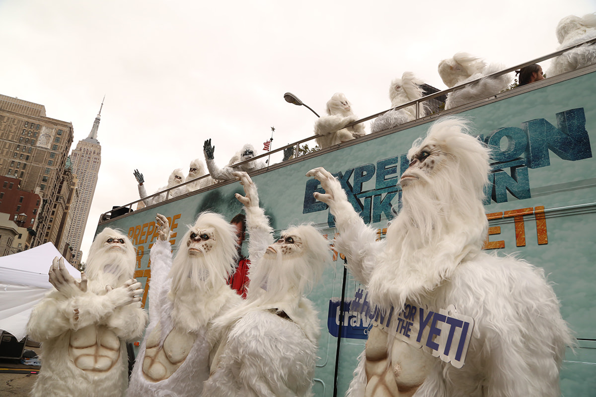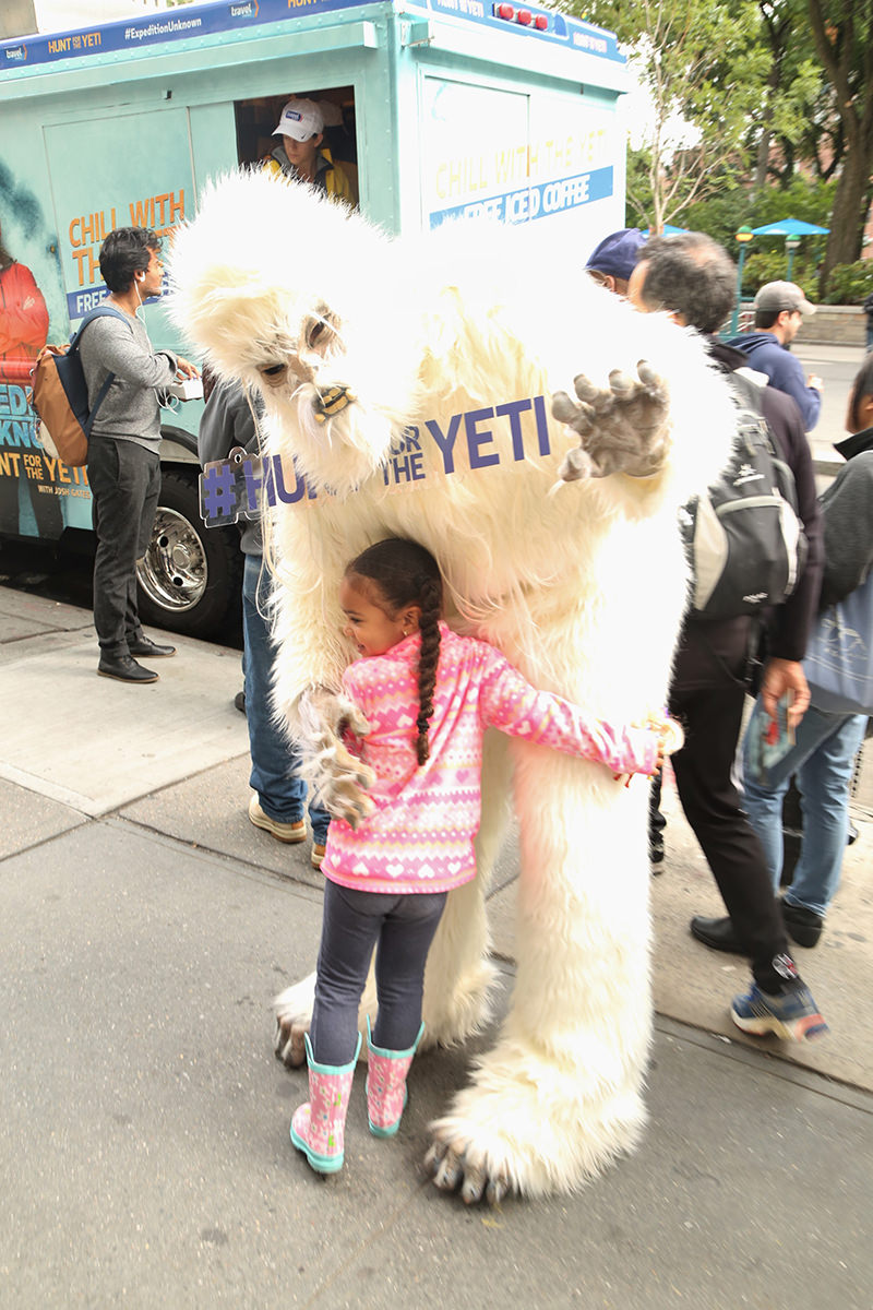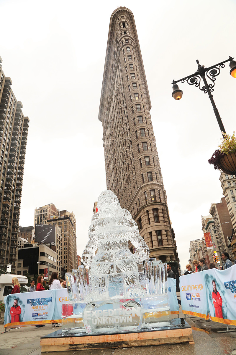 As a part of New York Comic Con festivities, The Travel Channel took over New York City on Tuesday to celebrate the upcoming premiere of the four-part special Expedition Unknown: Hunt for the Yeti. Dozens of yetis swarmed the streets to hand out free ice coffee while artists were hard at work sculpting life-sized ice sculptures in front of the flatiron building. A branded double-decker bus full of Yetis rolled into the Pedestrian Plaza at Flatiron for a dance party and photo opportunities!