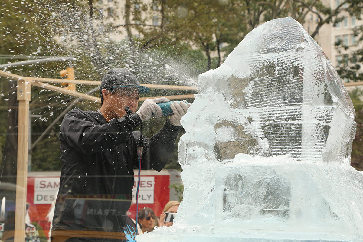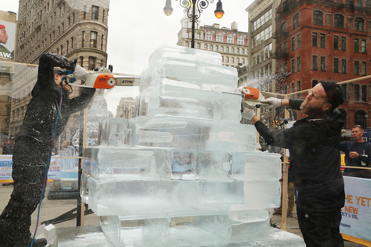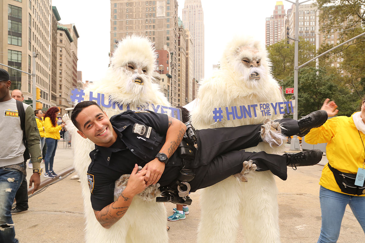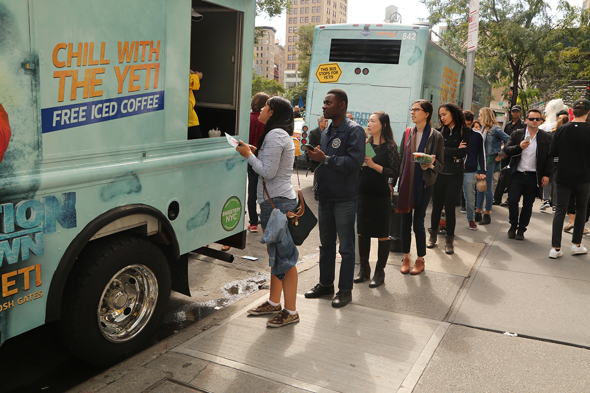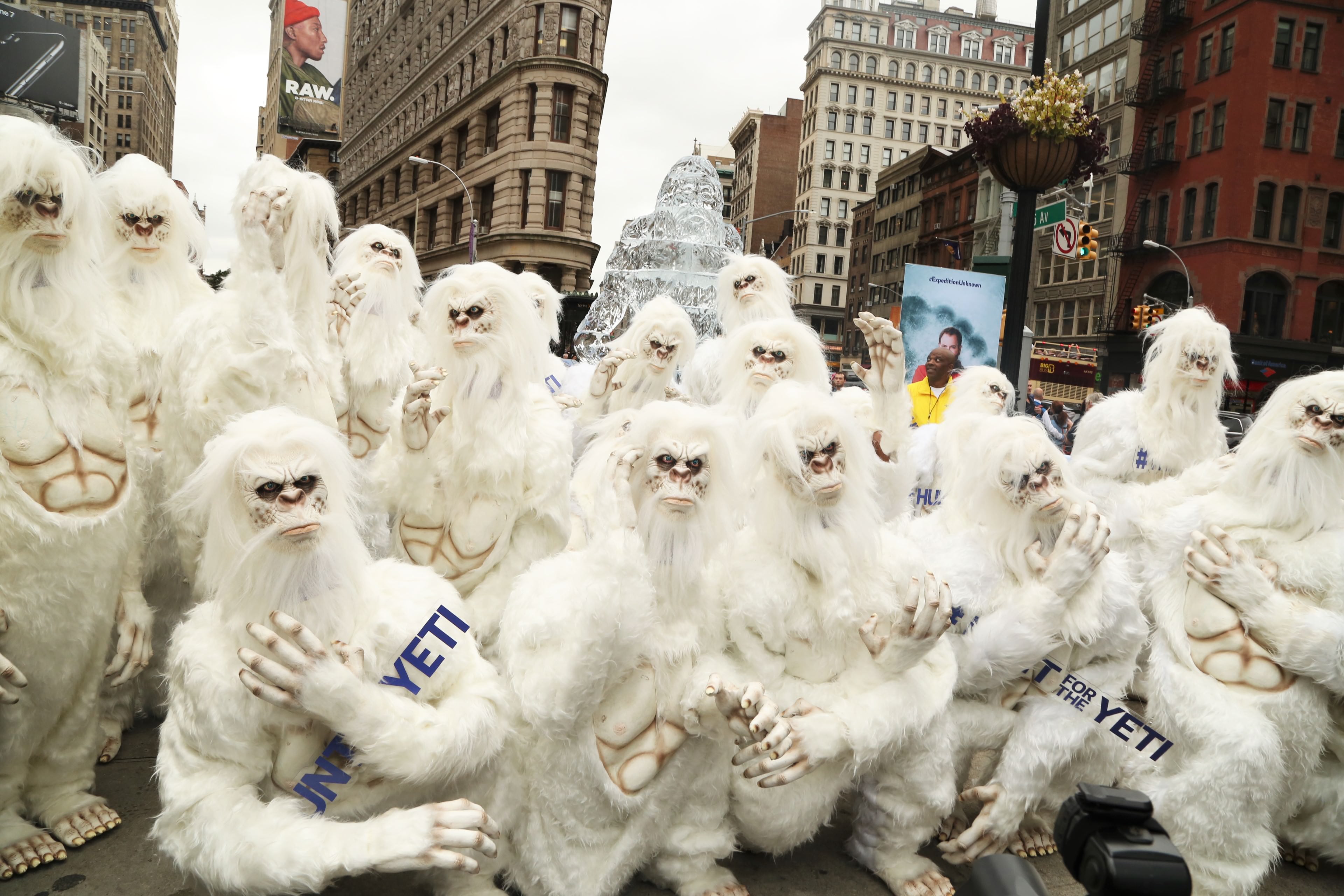 As a part of New York Comic Con festivities, The Travel Channel took over New York City on Tuesday to celebrate the upcoming premiere of the four-part special Expedition Unknown: Hunt for the Yeti. Dozens of yetis swarmed the streets to hand out free ice coffee while artists were hard at work sculpting life-sized ice sculptures in front of the flatiron building. A branded double-decker bus full of Yetis rolled into the Pedestrian Plaza at Flatiron for a dance party and photo opportunities!